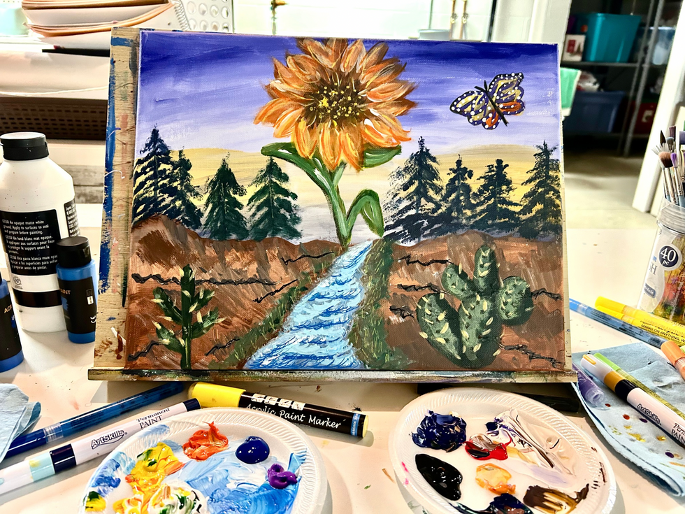 A collection of digital paintings capturing the beauty of nature, featuring sunflowers, butterflies, and desert landscapes.